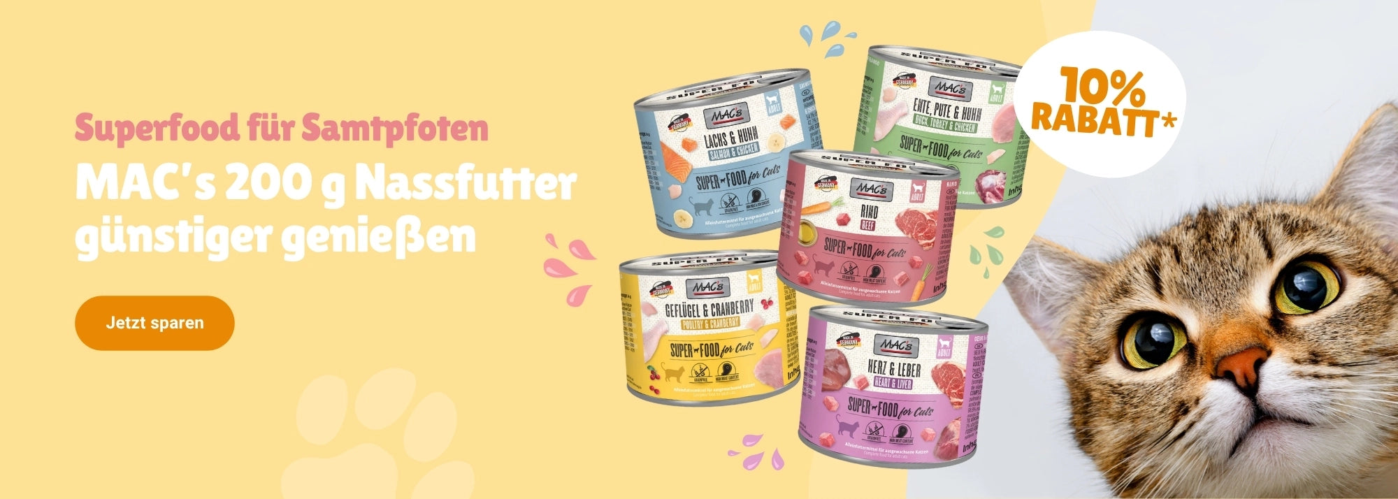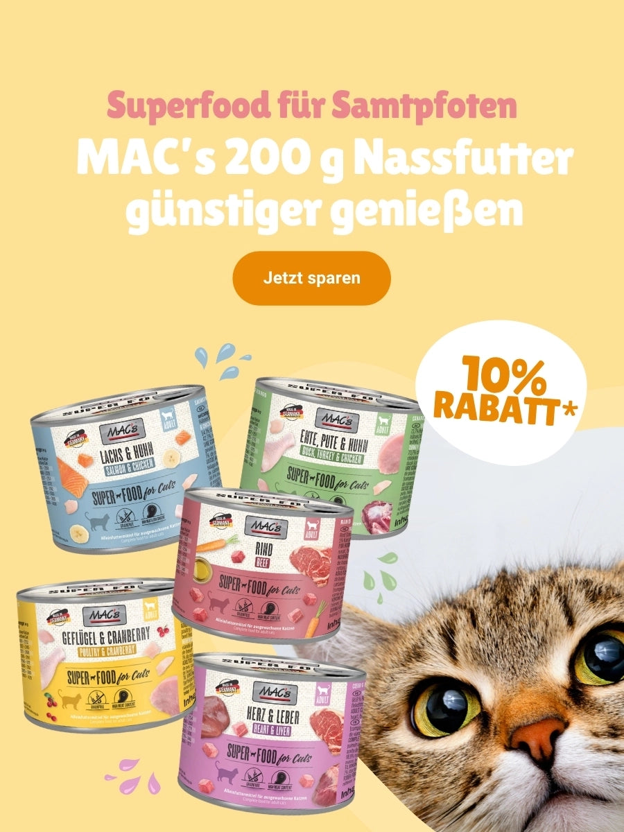 - Katzenfutter: Von Trockenfutter über Nassfutter bis hin zu leckeren Snacks – unsere Auswahl an Katzenfutter umfasst nährstoffreiche und gesunde Optionen für Miezen jeden Alters (auch Kittenfutter oder Senior Katzenfutter). Auch Katzenmilch wird gerne aus dem Napf geschleckt. Entdecke viele hochwertige Marken wie Sanabelle Katzenfutter, MAC's Katzenfutter, Happy Cat Katzenfutter oder AMORA Katzenfutter.