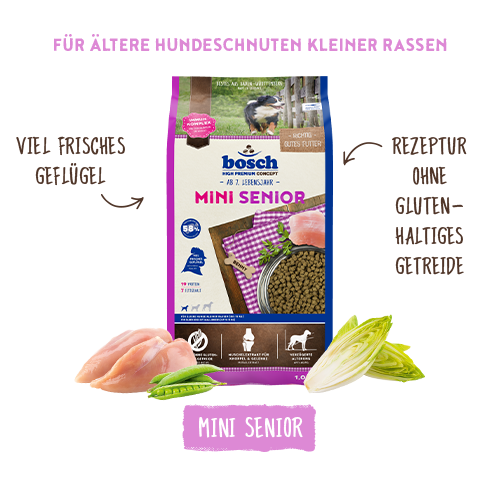 Mit zunehmendem Hundealter verändern sich die Bedürfnisse und Ansprüche unserer Vierbeiner – auch in der Ernährung. Senior-Hundefutter begleitet deinen Hund bis ins hohe Alter, mit reduziertem Energiegehalt und optimalen Nährstoffen zur Unterstützung von Gelenken, Muskeln und Organen.