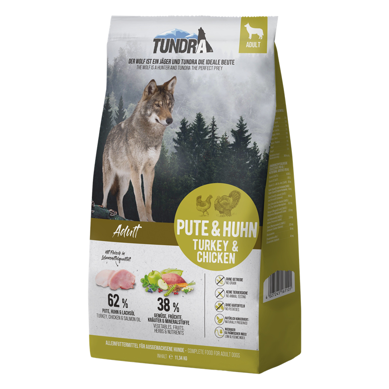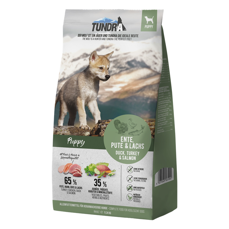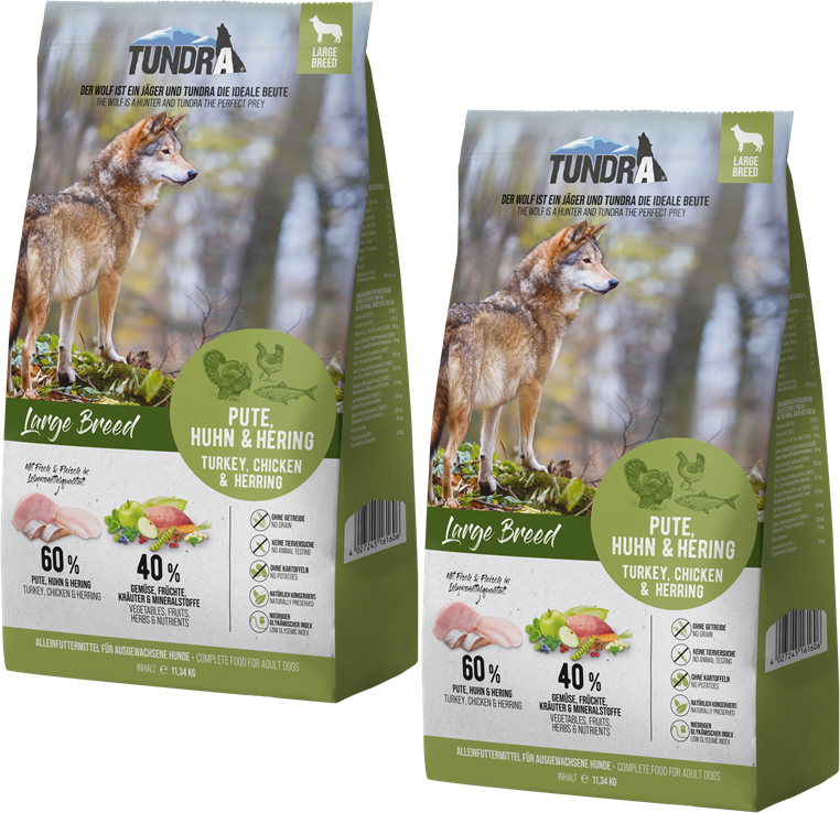 Mit Tundra Hundetrockenfutter fütterst du die Kraft der Wildnis. Hochwertige Proteine, naturbelassene Zutaten und pure Energie für Hunde mit Abenteuer im Herzen.