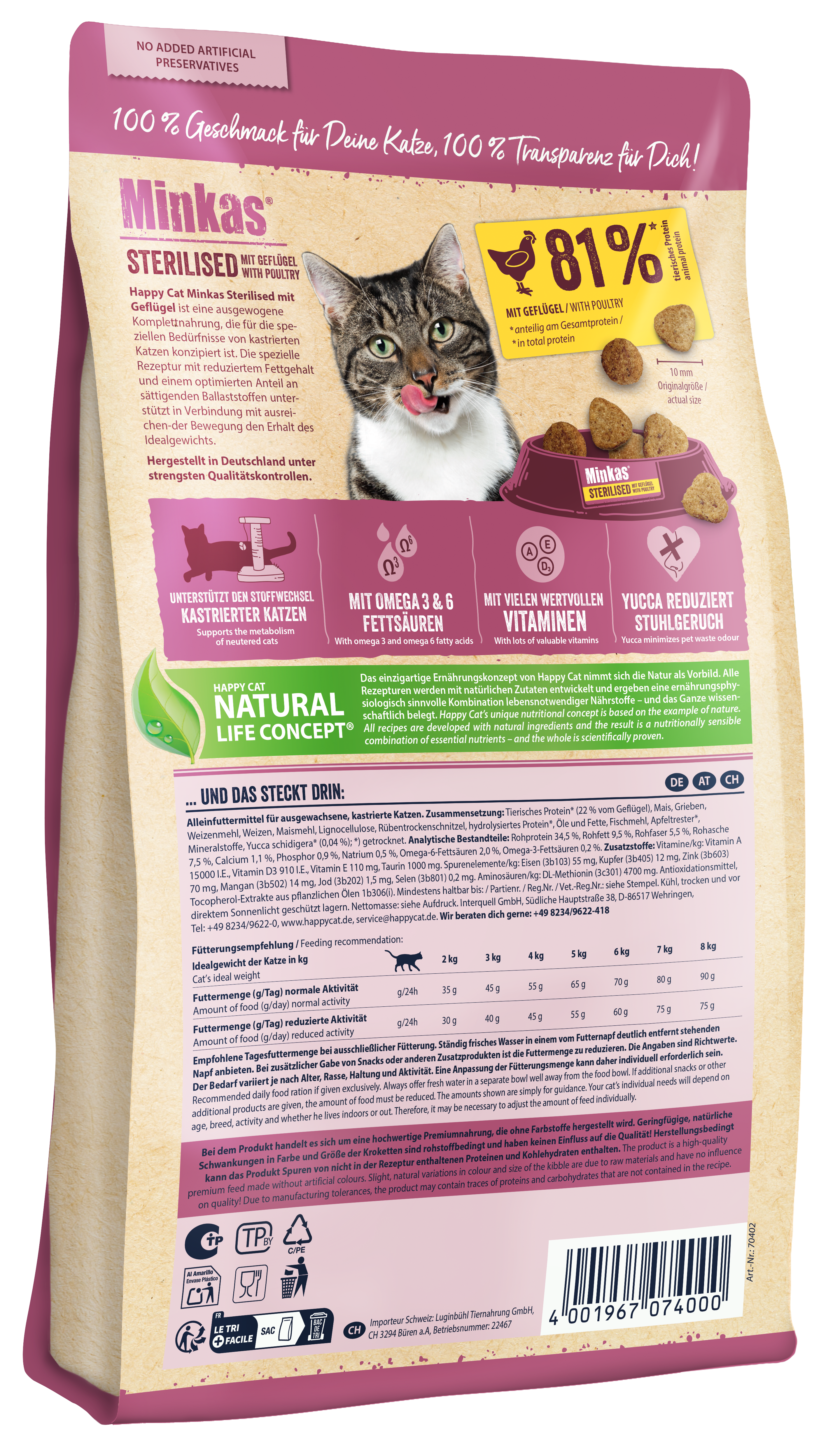 Happy Cat Trockenfutter wird in Deutschland hergestellt und unterliegt strengen Qualitätskontrollen. Diese unabhängigen Kontrollen gewährleisten, dass du deiner Katze stets die beste Qualität bieten kannst. - Ausgezeichnete Qualität