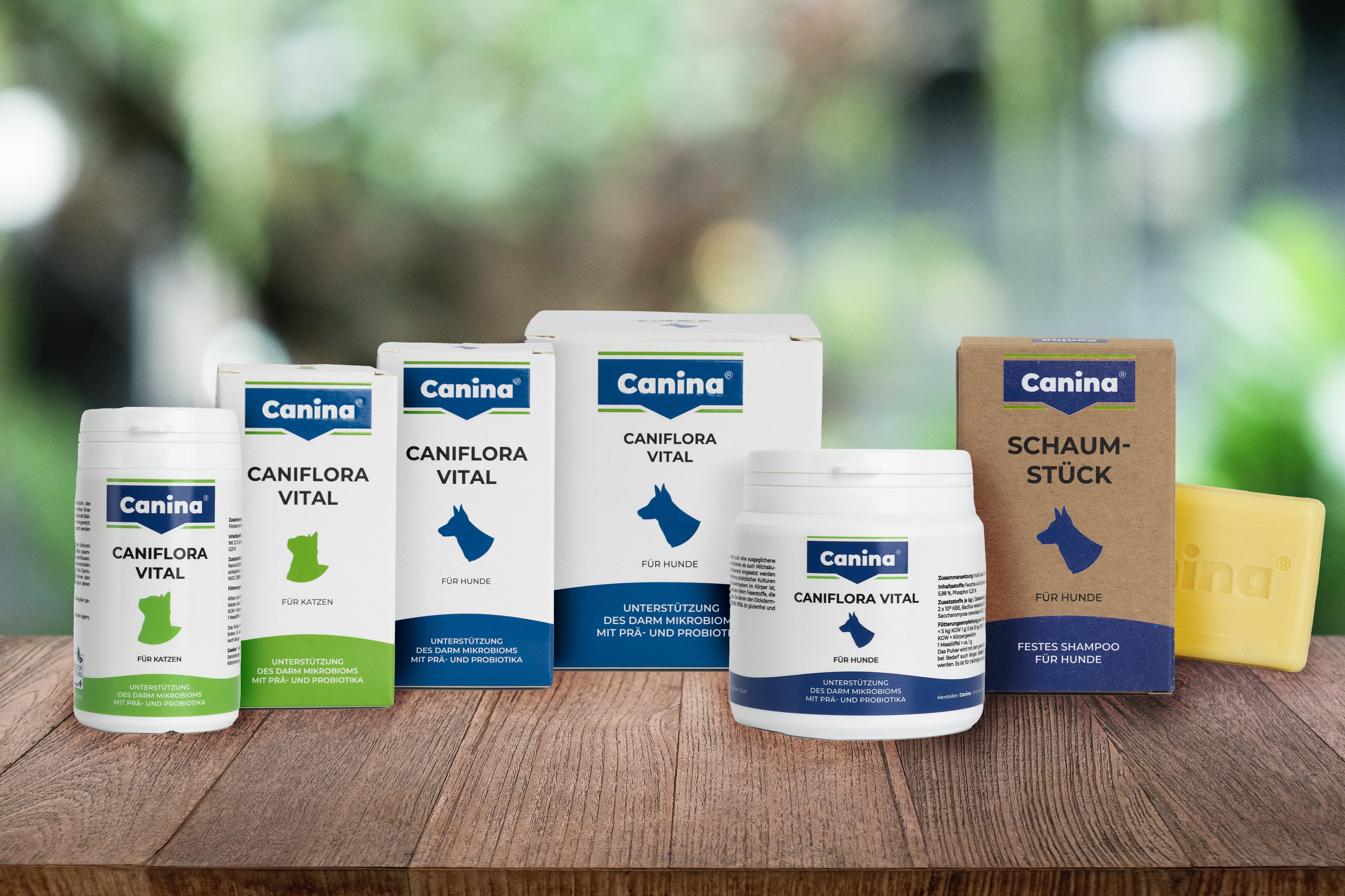 Bis heute hat sich Canina® kontinuierlich weiterentwickelt, so dass inzwischen über 50 Mitarbeiter dafür sorgen, dass die über 150 Artikel umfassende Produktpalette in annähernd 3.000 deutschen Zoofachgeschäften, Tierheilpraxen, Hundepflegesalons sowie in weiteren 40 Ländern der Welt angeboten werden können.