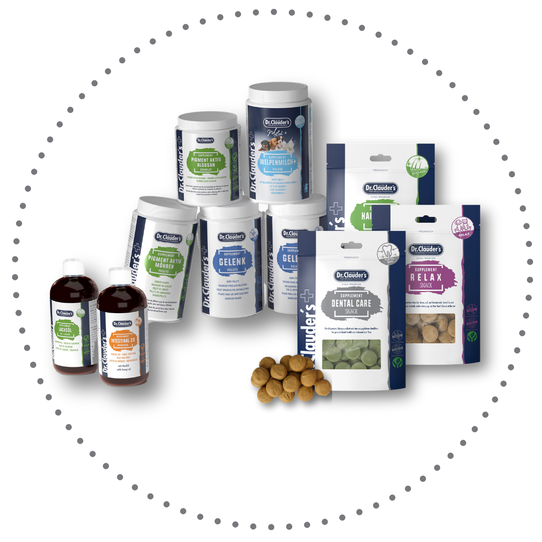 Dr.Clauder’s bietet Ihnen ein breites Spektrum hochwertiger Produkte, um die Nahrung Ihres Vierbeiners optimal und bedarfsgerecht zu ergänzen.