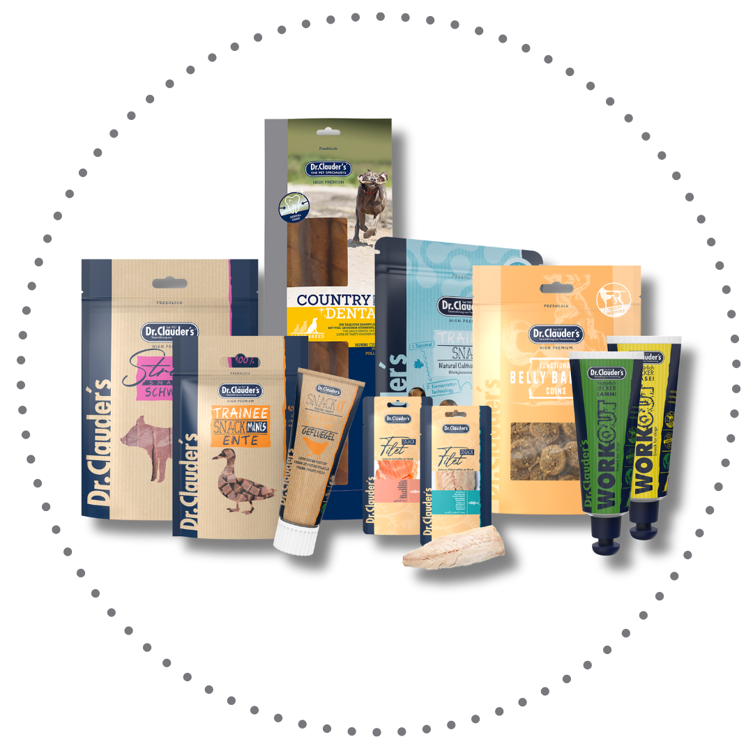 Snacks sind etwas Besonderes, das finden auch die meisten Hunde und Katzen. Ob als Belohnung beim Clicker-Training oder zum Verwöhnen: Dr.Clauder’s bietet Ihnen eine interessante Palette leckerer Snacks.