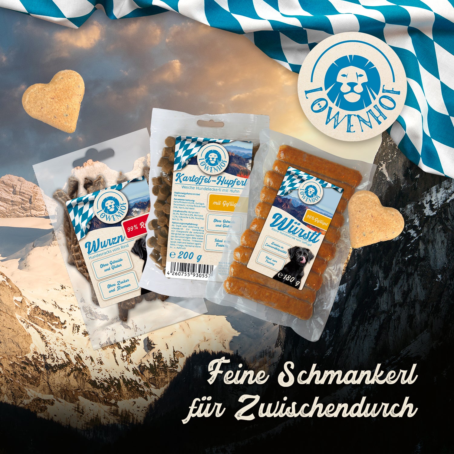 Dass so ein kleines Schmankerl zwischendurch das Leben schöner macht, wissen wir alle. Deswegen bietet Löwenhof für deine Fellnase verlockende Snacks mit bayerischem Charme.