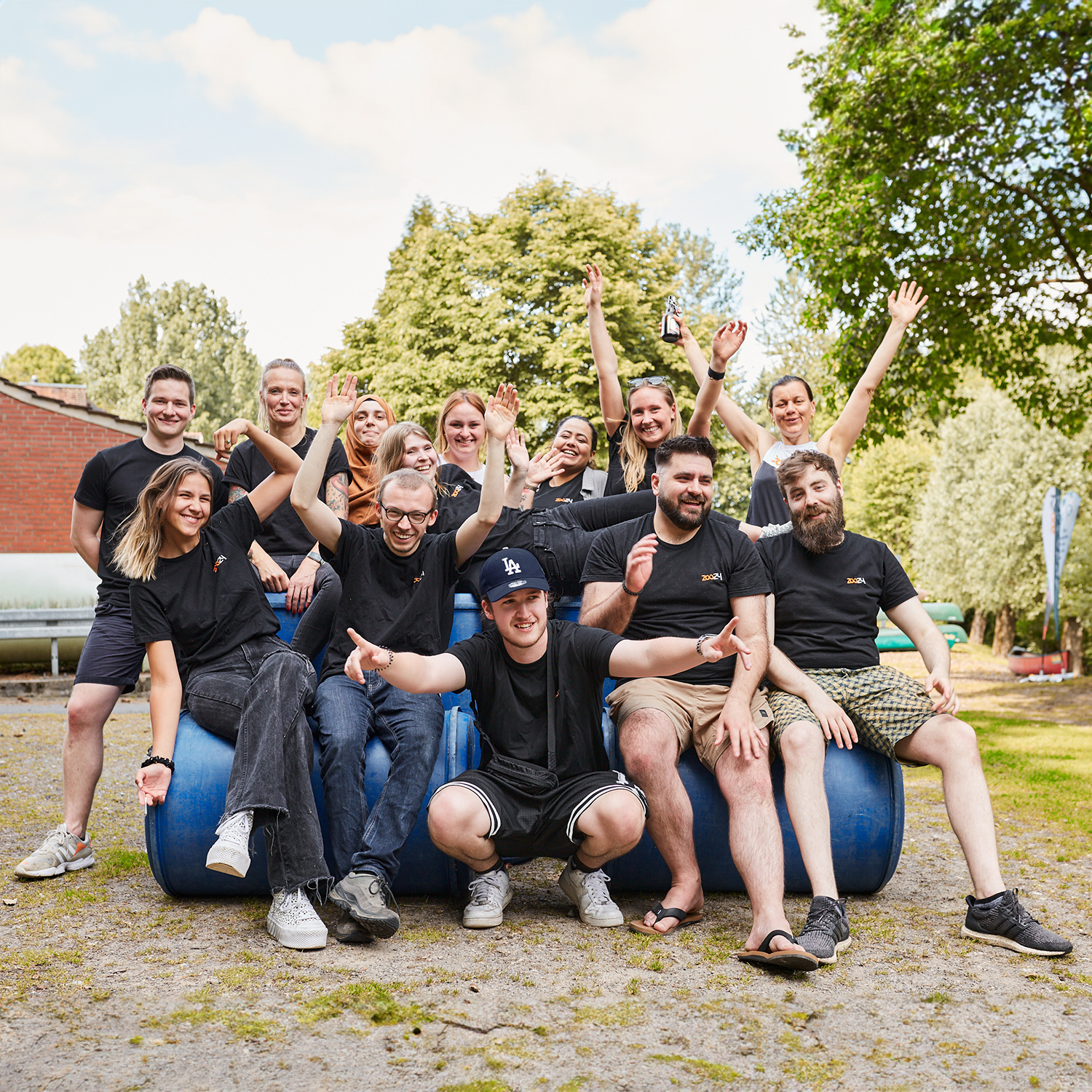 Auch bei unseren Teamevents begrüßen wir Veranstaltungen, die naturnah und umweltbewusst sind und trotzdem Spaß machen. Bei unserem letzten Event waren wir Floßbauen – hingekommen sind wir natürlich mit dem Fahrrad. Aus luftdichten Plastiktonnen, Hölzern und Brettern sowie Strohband haben wir ein Floß gebaut, mit dem wir anschließend über die Werse geschippert sind.