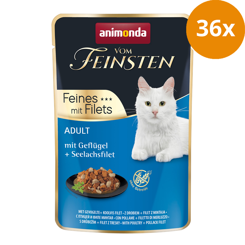 Vom Feinsten Adult Feines mit Filet steht für ausgewogene, leckere gesunde Ernährung auf höchstem Niveau für ausgewachsene Katzen von 1 - 6 Jahren. Die Qualität der fleischlichen Rohstoffe in den zarten Stückchen kombiniert mit delikater Sauce und feinsten Filetstückchen garantiert einen einzigartigen Genuss. Die feinen Gourmet-Ragouts versorgen die ausgewachsene Katze mit allen lebenswichtigen Nährstoffen.