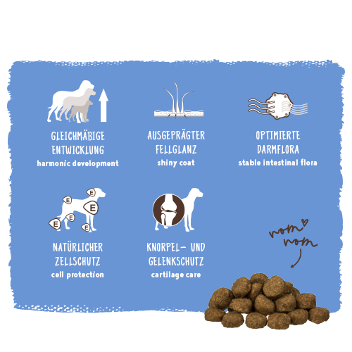 - für ernährungssensible Hunde in der Aufzuchtphase (weizenfrei)