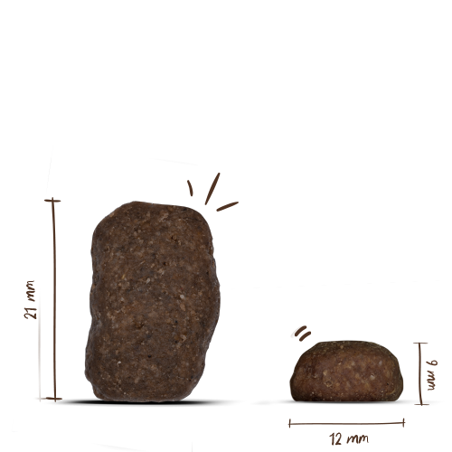 Krokettenform & -größe sind auf das Futteraufnahmeverhalten großer Hunde abgestimmt.