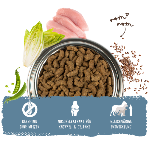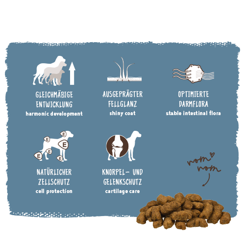 Die Muschelextrakte unterstützen die Knorpel- & Gelenkentwicklung Deines Junghundes. Durch den Einsatz von Kolostrum wird das Immunsystem ebenso gestärkt, wie durch den spezifischen Immun-Komplex aus Mannanen und Glucanen (von Tierernährern entwickelt).