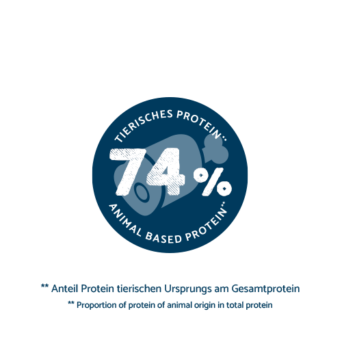 Frisches Geflügel (30 %), Reis, Gerste, Geflügelprotein (getrocknet), Mais, Rübentrockenschnitzel (entzuckert), Geflügelfett, Proteinhydrolysat, Fischmehl, Vollei (getrocknet), Leinsamen, Erbsen (getrocknet), Hefe (getrocknet, 0,1 % Mannanoligosaccharide, 0,06 % Beta-Glucane), Fischöl, Kolostrum (0,2 %), Natriumchlorid, Grünlippmuscheln (getrocknet, 0,1 %), Kaliumchlorid, Chicorée (getrocknet).