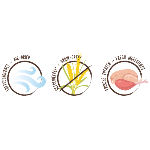 Diese feine Leckerei ist komplett getreidefrei und einfach nur yummy! Ein echter Liebesbeweis an Ihre Fellnase.