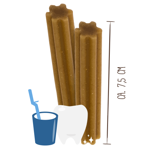 Die Form von Sammy's flexiblem Zahnstengel regt Ihren Hund zum Kauen an, stimuliert das Zahnfleisch, Futterreste können entfernt und Zahnsteinbildung vorgebeugt werden. Bei täglicher Fütterung kann die Bildung von Plaque und neuem Zahnstein vermindert werden - für ein unwiderstehlich strahlendes Lächeln Ihrer Fellnase. Der leckere, fettarme Kausnack für große und kleine Hundeschnauzen wird ohne die Zugabe von Zucker schonend hergestellt - perfekt für die tägliche Zahnpflege.