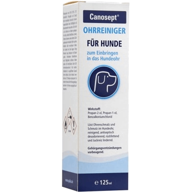 Mit dem Canosept® Ohrreiniger können Sie die Ohren Ihres Hundes auf einfache Weise reinigen. Einfach Flüssigkeit ins Ohr träufeln, einmassieren, der Hund schüttelt überflüssigen Ohrreiniger mit Ohrenschmalz und Schmutz selbst aus. Bei einer einmaligen wöchentlichen Anwendung hilft es Gehörgangsentzündungen vorzubeugen. Dank der antispetischen und desodorierenden Wirkung des Canosept® Ohrreiniger für Hunde tragem Sie so zur Hygiene und Pflege Ihres Hundes bei.