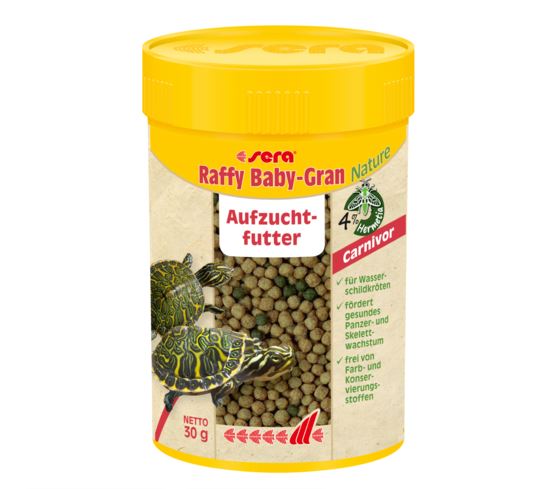 sera Raffy I Nature ist der Leckerbissen ohne Farb- und Konservierungsstoffe aus naturbelassenen, schonend getrockneten Gammarus (43,5 %), Garnelen (43,5 %), kleinen Fischen und Krill für Wasserschildkröten und andere (gelegentlich) Fleisch fressende kleinere Reptilien sowie Amphibien.