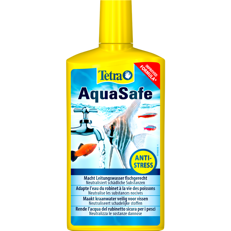 Das schnell lösliche Tetra AquaSafe bereitet Leitungswasser sofort zu fischgerechtem, naturnahem Aquarienwasser auf. Durch die einzigartige Kombination aus Vitaminen, natürlichen Biopolymeren und Spurenelementen sorgt seine neue Formel für gesundes Wasser und gesunde Fische. Lebensnotwendige Stoffe, die im natürlichen Lebensraum vorkommen, werden hinzugefügt: Jod zur Vitalisierung der Fische, Magnesium zur Förderung von Wachstum und Wohlbefinden, Vitamin B gegen Stress. Kiemen und Schleimhäute werden durch fühlbare Pflegekolloide wirksam geschützt.