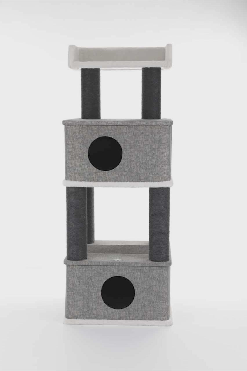 Kratzbaum mit gepolsterter Liegefläche und Rand.