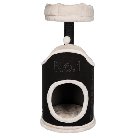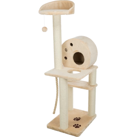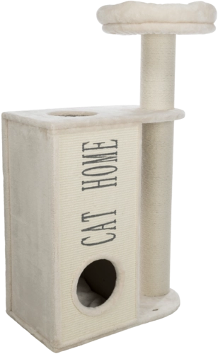 mit Plüsch-BezugStämme mit Natursisal umwickeltgepolsterte LiegeplatteHöhle komplett mit Fleece ausgestattetmit Spielzeug am Gummiband