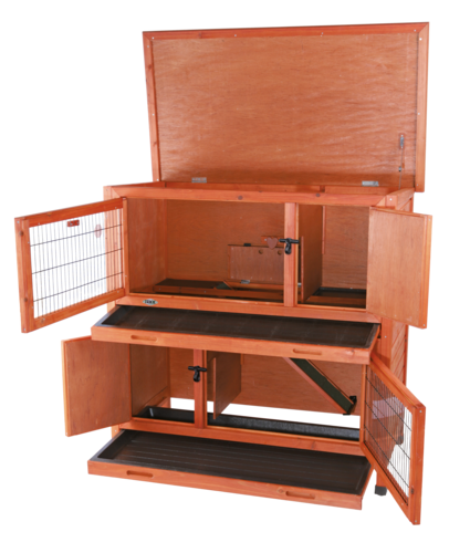 Damit sich Ihre Tiere rundumwohl fühlen, gibt es eine Rückzugsmöglichkeit und Tür auf jeder Ebene.