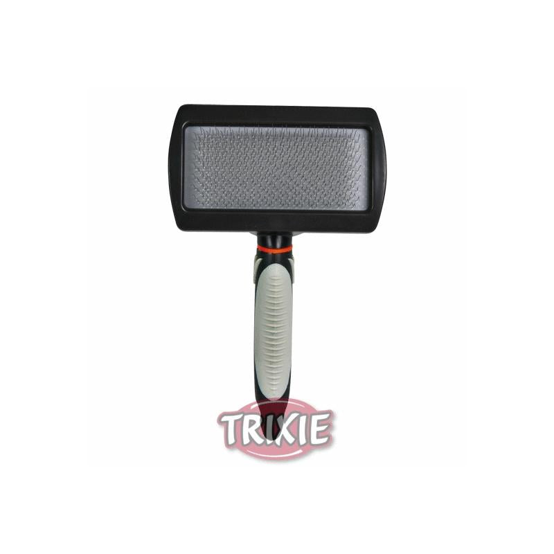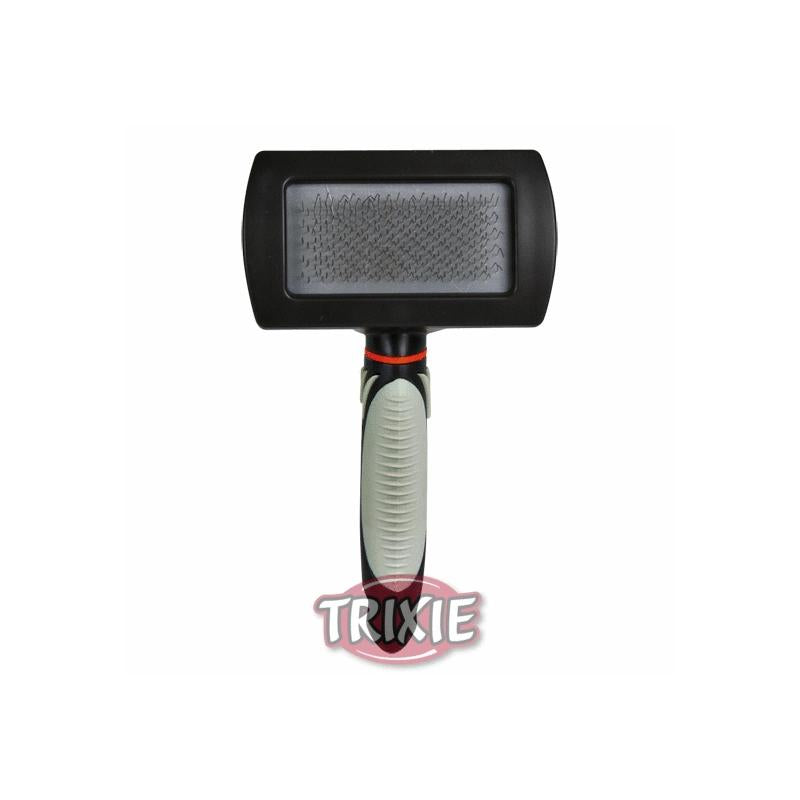 Diese Softbürste aus Kunststoff hat einen Griff mit rutschfester Gummieinlage sowie extra weiche Metallborsten. Sie dient der besonderen Pflege des Deckhaars und der Unterwolle.Für folgende Felltypen geeignet:Lockhaar: Weich, lockig, wird regelmäßig geschorenBeispiel: Pudel Bichon Frisé Langhaar Seidenhaar oder Langhaarkatzen: Mittellanges bis langes, seidiges oder dichtes Deckhaar entweder mit feiner oder mit weicher, üppiger UnterwolleBeispiel Langhaar: Collie Golden Retriever Berner Sennenhund Border CollieBeispiel Seidenhaar: Yorkshire Terrier Setter Langhaardackel Spaniel MalteserBeispiel Langhaarkatzen: Main Coon Norwegische Waldkatze Perser Kurzhaar, Stockhaar oder Kurzhaarkatzen: Kurzes bis mittellanges glattes, glänzendes Deckhaar und feine, weiche, dichte bis sehr dichte UnterwolleBeispiel Kurzhaar: Labrador Rottweiler Beagle MopsBeispiel Stockhaar: Deutscher Schäferhund HuskyBeispiel Kurzhaarkatzen: Europäisch Exotisch Kurzhaar Kartäuser Siam Rauhaar: Deckhaar hart, dicht und drahtig mit kurzer, weicher, dichter Unterwolle, muss regelmäßig getrimmt werdenBeispiel: Rauhaardackel Airdale Terrier Cairn Terrier Fox Terrier Schnauzer
