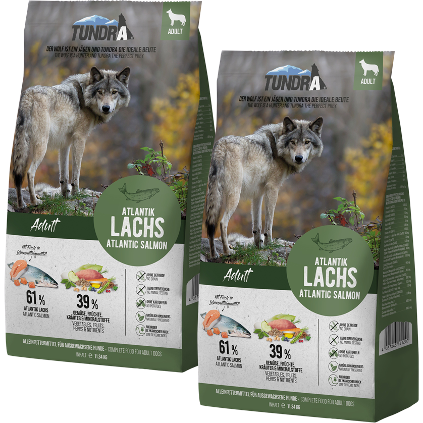 Bei der Herstellung dieses Trockenfutters von Tundra wird nur Lachs in Lebensmittelqualität verwendet. Dieses frische Fleisch liefert besonders wertvolle Proteine, die hoch verdaulich sind. Besonders ist auch, dass die Zusammensetzung keine Beigabe von Getreide vorsieht. Auch auf die Verarbeitung von Kartoffeln, die einen hohen glykämischen Index haben, wird verzichtet.