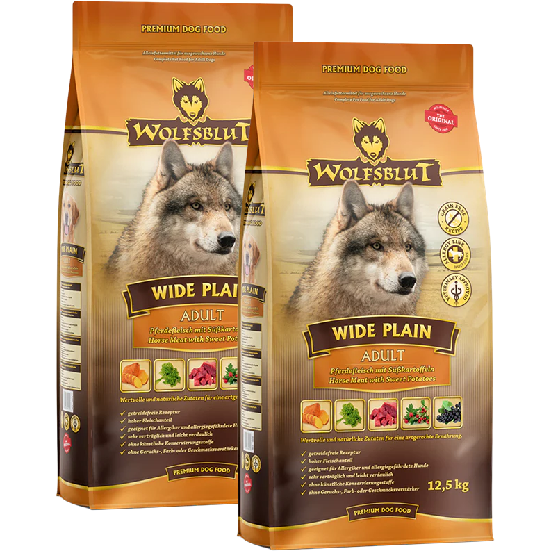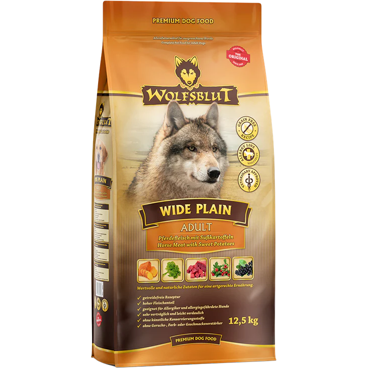 Süßkartoffeln, die laut dem CSPI (Center for Science in the Public Interest) das nährstoffreichste Gemüse sind, und fettarmes Pferdefleisch in Lebensmittelqualität machen Wide Plain nicht nur zu einem hochwertigen und nahrhaften, sondern auch sehr schmackhaften Lieblingsfutter für Ihren Vierbeiner.