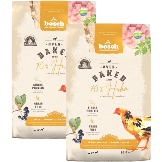 Oven baked Huhn enthält mit 70 % Huhn, davon 62 % als frisches Huhn nur eine tierische Eiweißquelle (single Protein) und wird ohne Getreide hergestellt.