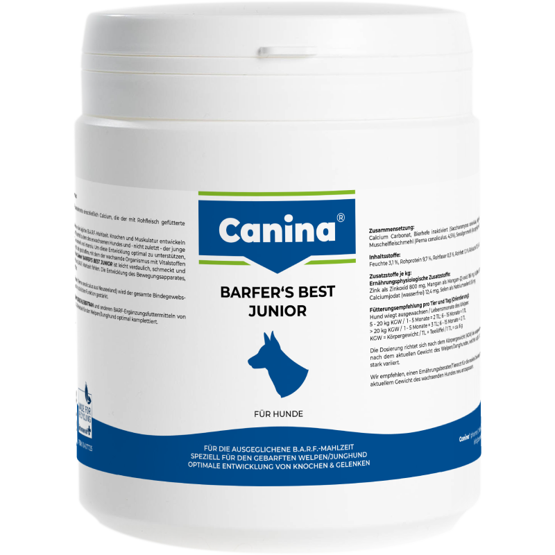 Um diese Entwicklung optimal zu unterstützen, haben wir ein Produkt für gebarfte Welpen/Junghunde geschaffen, mit dem der wachsende Organismus mit allen Vitalstoffen versorgt wird, um sich bestmöglich zu entwickeln. Barfer's Best Junior von Canina® ist leicht verdaulich, schmeckt und sollte bis zum Ende der Wachstumsphase in keiner
